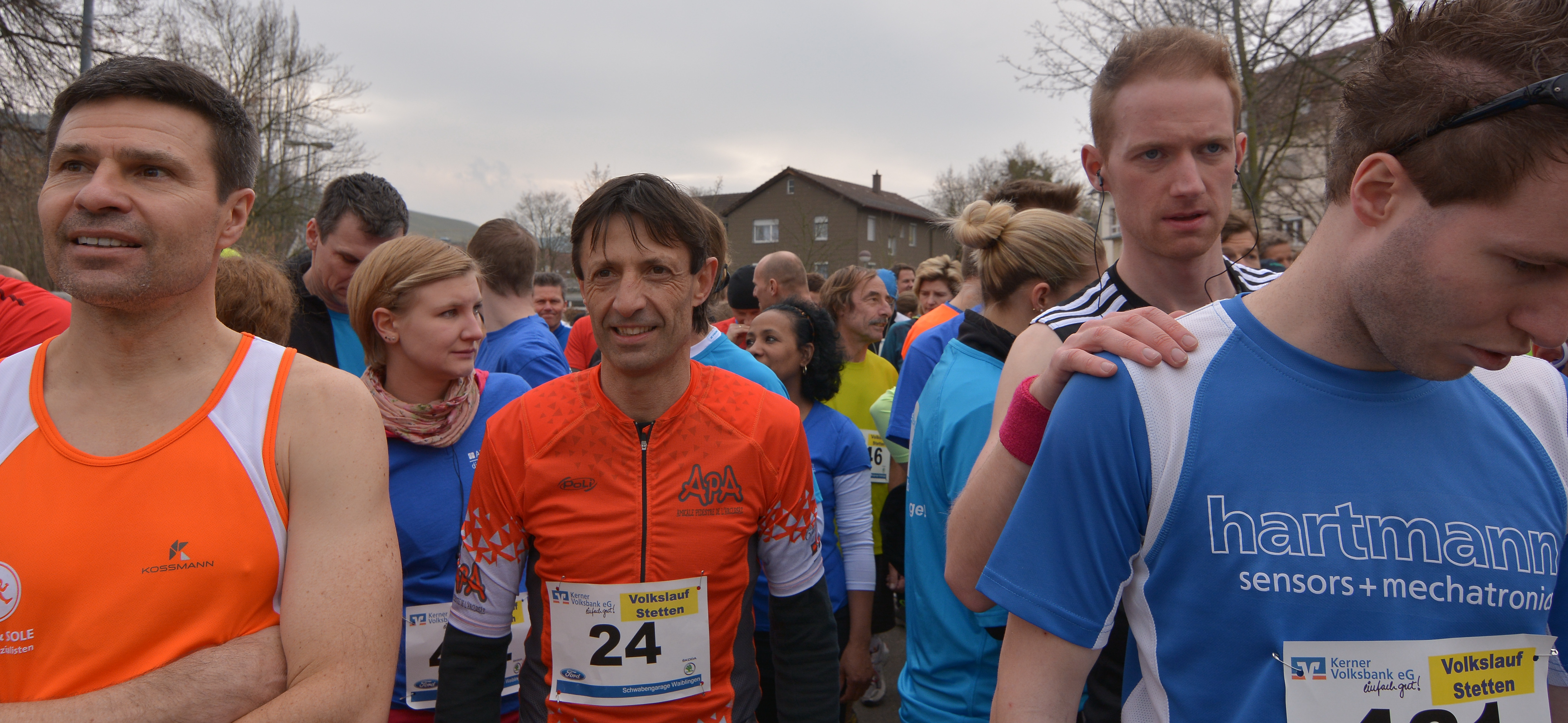 Il s’agit, pour lui, de donner le départ de la 45e » Stettener Volkslauf », première course de l’année dans la région. Une grande boucle dans les vignes de Stetten et Strümpfelbach, village voisin de vignerons, attend les 207 coureurs, hommes et femmes, pour leur offrir (s’ils sont en état d’en profiter) une magnifique vue sur la vallée du Rems. La boucle est à faire deux fois pour atteindre les 10 kilomètres.