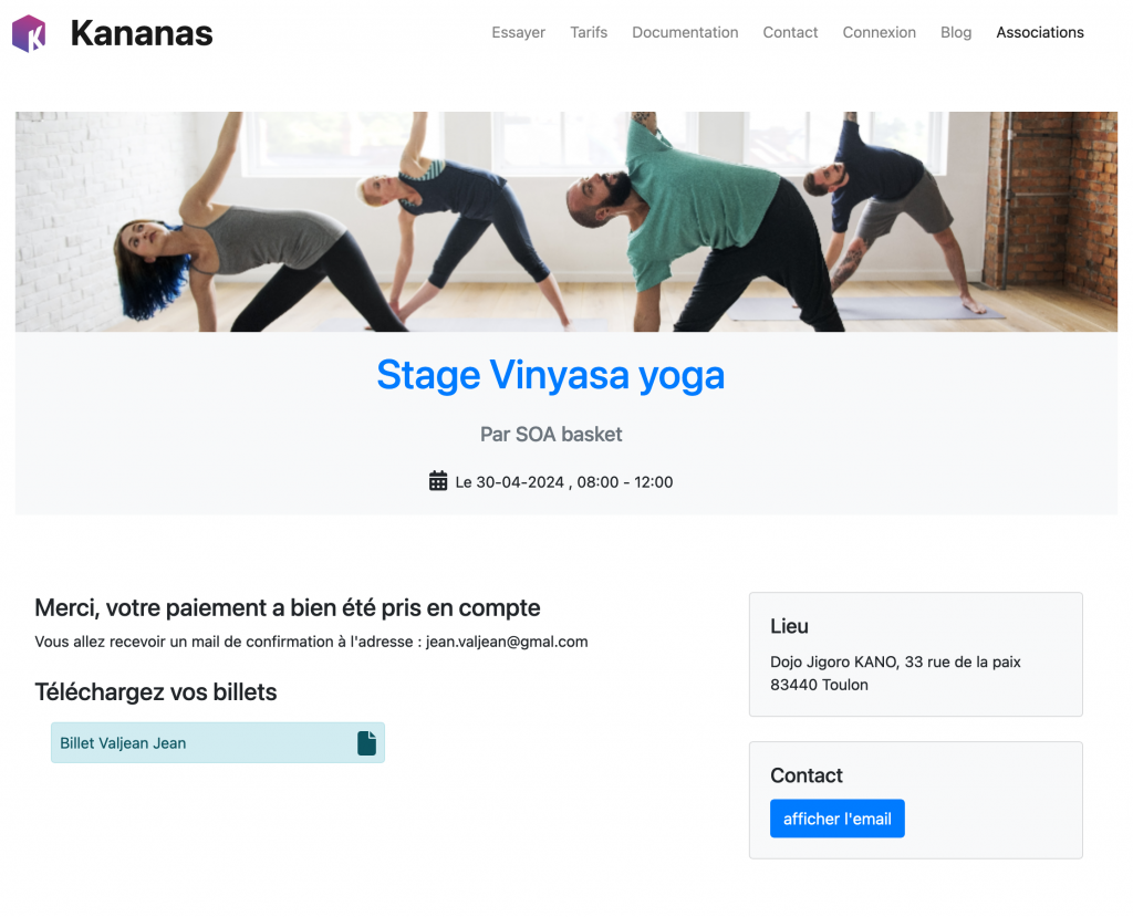 Vous pouvez ainsi créer un événement et vendre vos billets en ligne. Kananas c’est aussi un outil de paiement en ligne et une appli pour scanner les billets, parfait pour organiser tous vos événements associatifs !