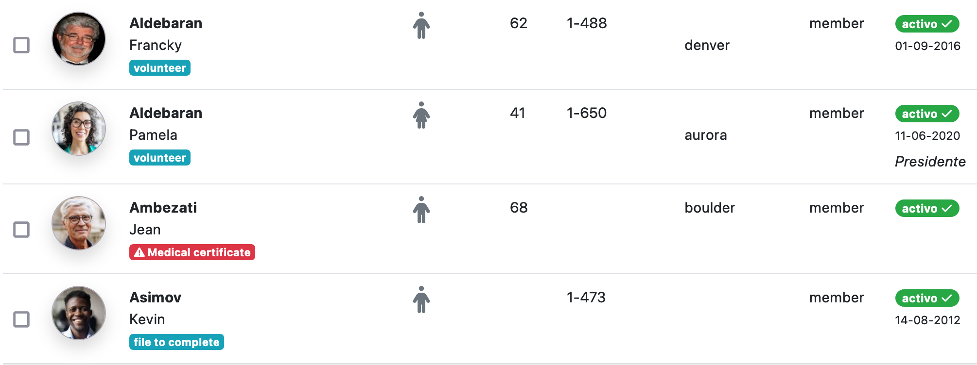 Importazione dei tuoi contatti (membri, esterni, ecc.), gestione delle informazioni personali, contributi, monitoraggio delle attività, emissione di fatture, gestione dei diritti di accesso, possibilità di allegare documenti al file, statistiche, esportazione verso altri software, personalizzazione del file (aggiunta di campi liberi), stampa di tessere, annotazioni.