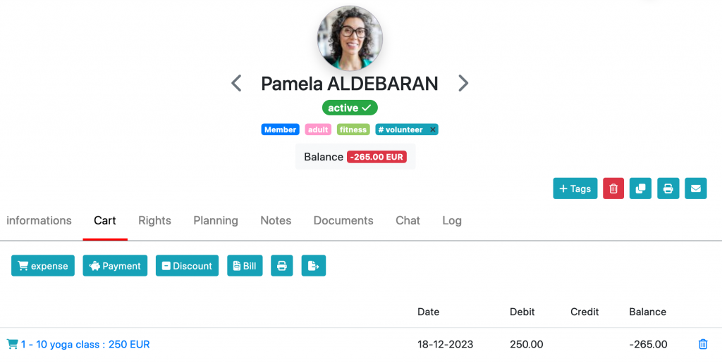 L’aggiunta di un pagamento collegato a questo prodotto viene effettuata sia nel carrello del contatto (pulsante di pagamento), sia dal pagamento online dal spazio personale.